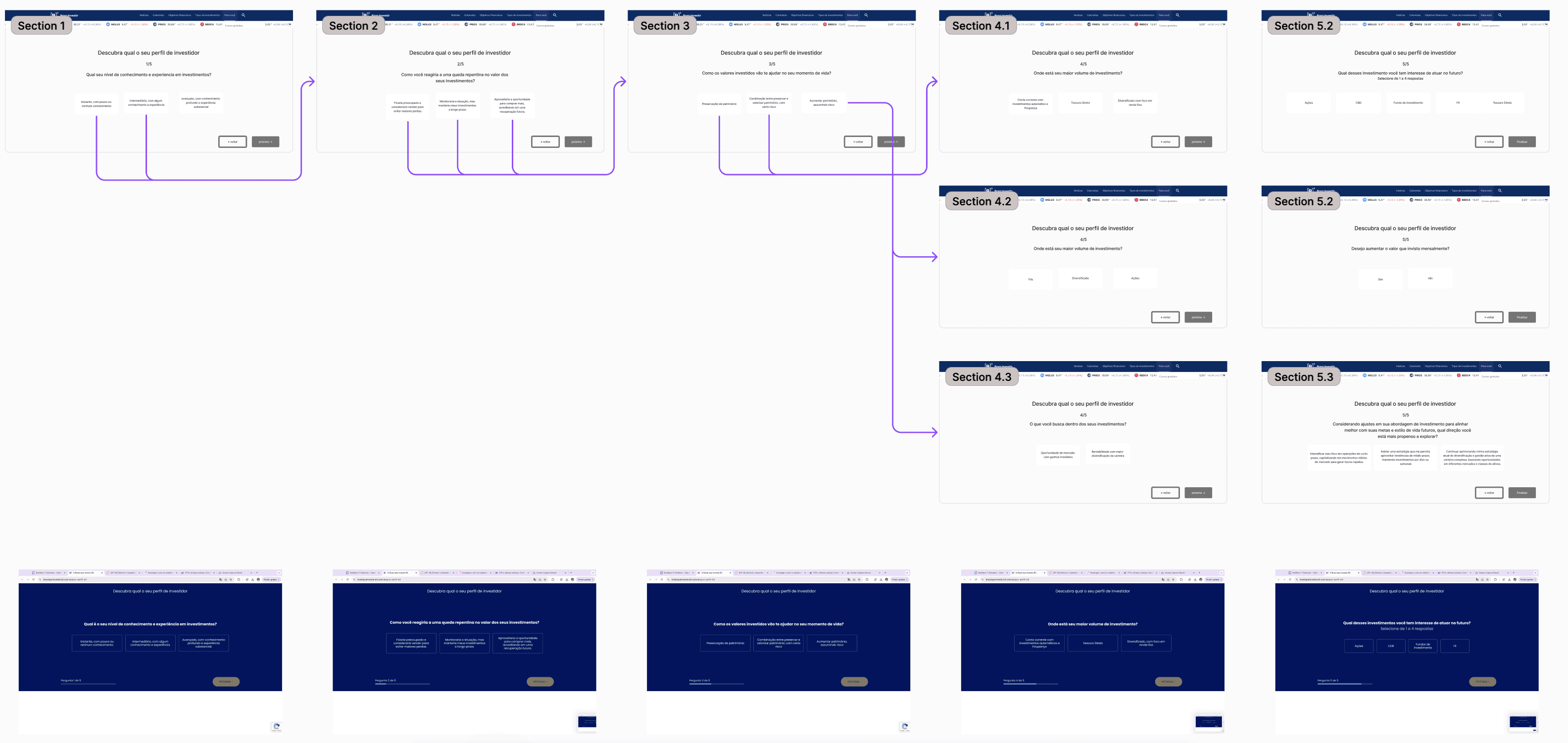 Nosso objetivo era criar uma experiência intuitiva e eficiente, permitindo que os usuários descobrissem seu perfil de investidor de forma natural e segura, sem fricção na navegação.