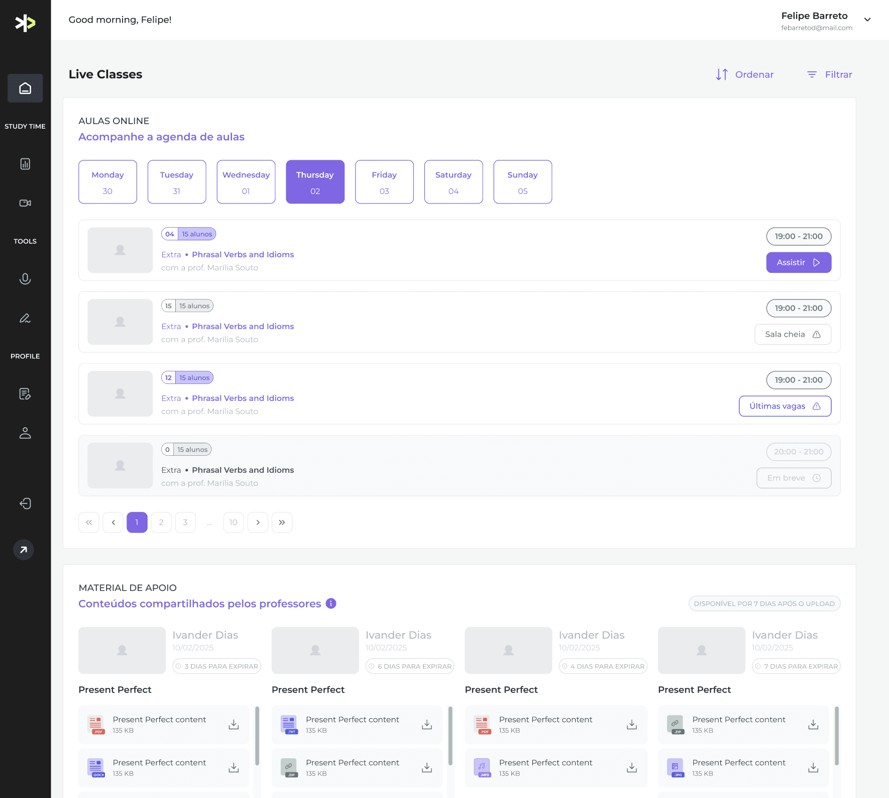 A EnglishPass buscava reformular sua estratégia de ensino para oferecer uma experiência mais eficaz e centralizada, integrando aulas ao vivo e materiais complementares em uma única plataforma. Estudos internos e análises pedagógicas indicavam que alunos que participavam de mais aulas ao vivo apresentavam melhores resultados, maior engajamento e atingiam a fluência em menos tempo. No entanto, a versão anterior da plataforma utilizava soluções externas como Google Meet e Microsoft Teams para as aulas, o que fragmentava a jornada de aprendizado, dificultava o acompanhamento e prejudicava a percepção de valor por parte do aluno.