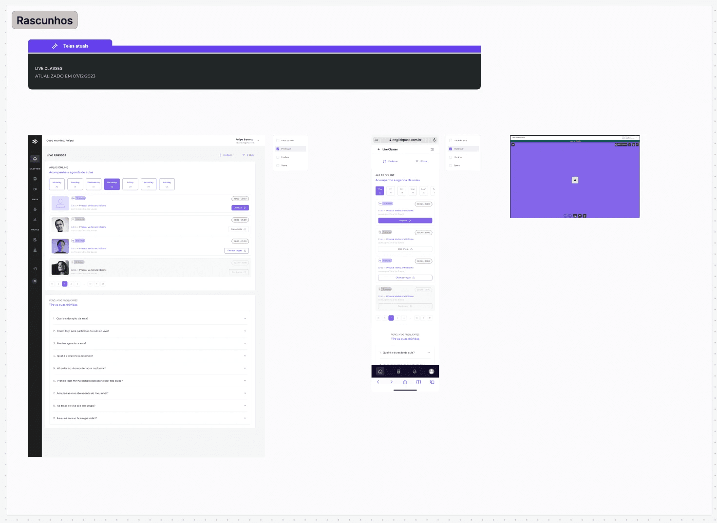 Conversamos com alunos que estavam cursando inglês em outras plataformas, além de professores e gestores da EnglishPass. Mesmo que os alunos não estivessem diretamente inseridos no produto atual, suas experiências serviram como insumo valioso para identificar expectativas, frustrações e preferências sobre aulas ao vivo e materiais de apoio.Benchmarking com plataformas concorrentes